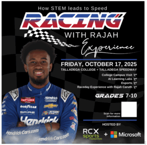 Go behind the scenes at the legendary Talladega Superspeedway and meet NASCAR rising star Rajah Caruth in-person. Hear his story, see the science and engineering that fuel his success, and get a first-hand look at the precision, teamwork, and technology that power professional racing.